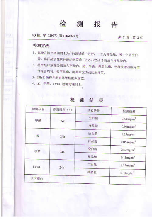 活性炭纖維織物窗簾檢測報(bào)告