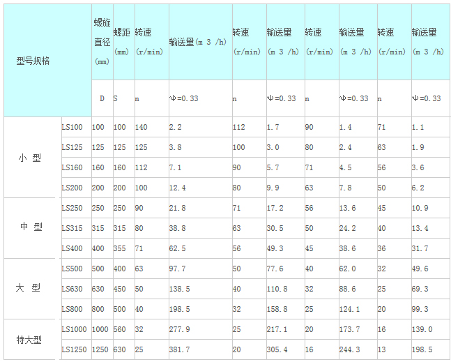 LS型螺旋輸送機技術(shù)參數(shù)表:
