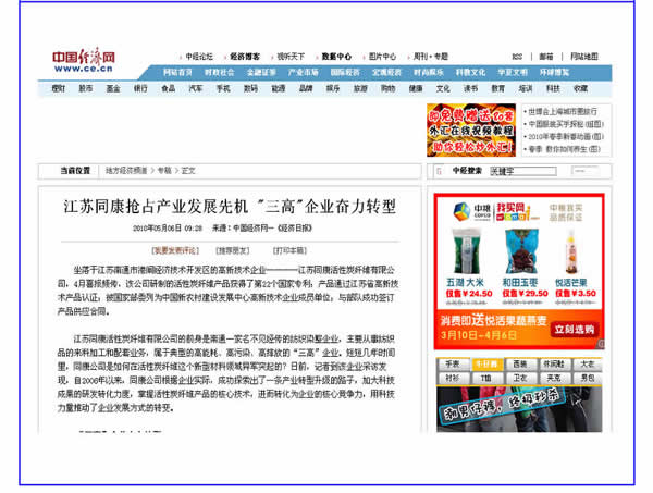 中國(guó)經(jīng)濟(jì)網(wǎng)——江蘇同康搶占產(chǎn)業(yè)發(fā)展先機(jī)“三高”企業(yè)奮力轉(zhuǎn)型