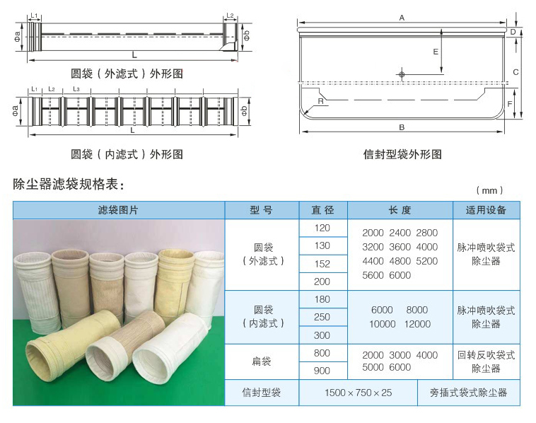 濾袋是決定袋式除塵器除塵效率和工作溫度的關鍵元件,更換濾袋的費用又是袋式除塵器的主要維修費用。濾袋工作壽命關系到除塵器的運行狀態和成本。因此,選擇合適的濾料和設計合理的結構就尤為重要了。 選擇濾料應根據氣體的溫度、濕度和化學特性;顆粒物的大小、重量、外形、有否啄磨性以及含塵濃度、過濾速度、清灰方式、排放濃度和袋式除塵器的工作制度等因素綜合考慮。